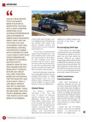 SWARCO WAS PASSIONATE of the vehicle itself, but also on the tackling our mobility challenges has